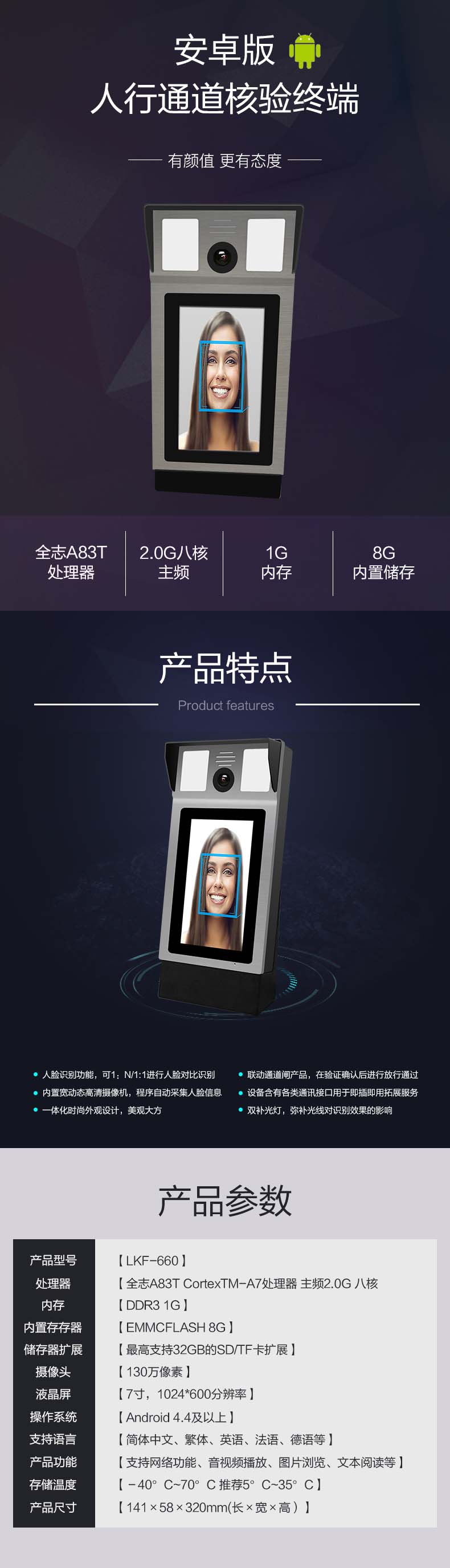来吉安卓版人行通道核验终端人证比对人脸识别指纹识别