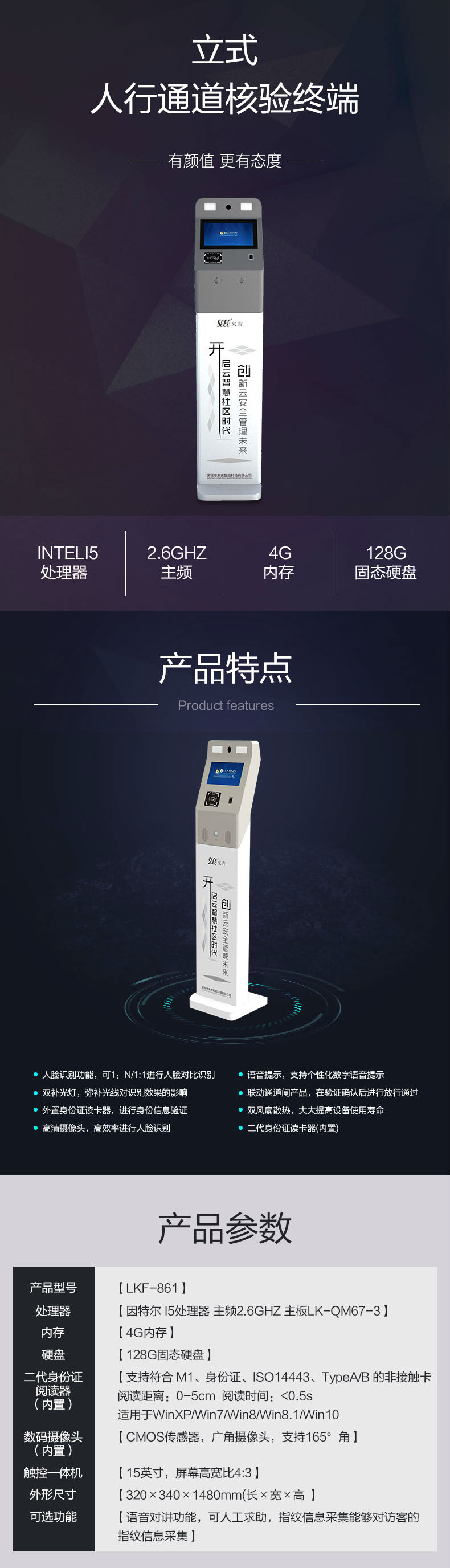 来吉立式人行通道核验终端系统人脸识别人证比对人证车三合一