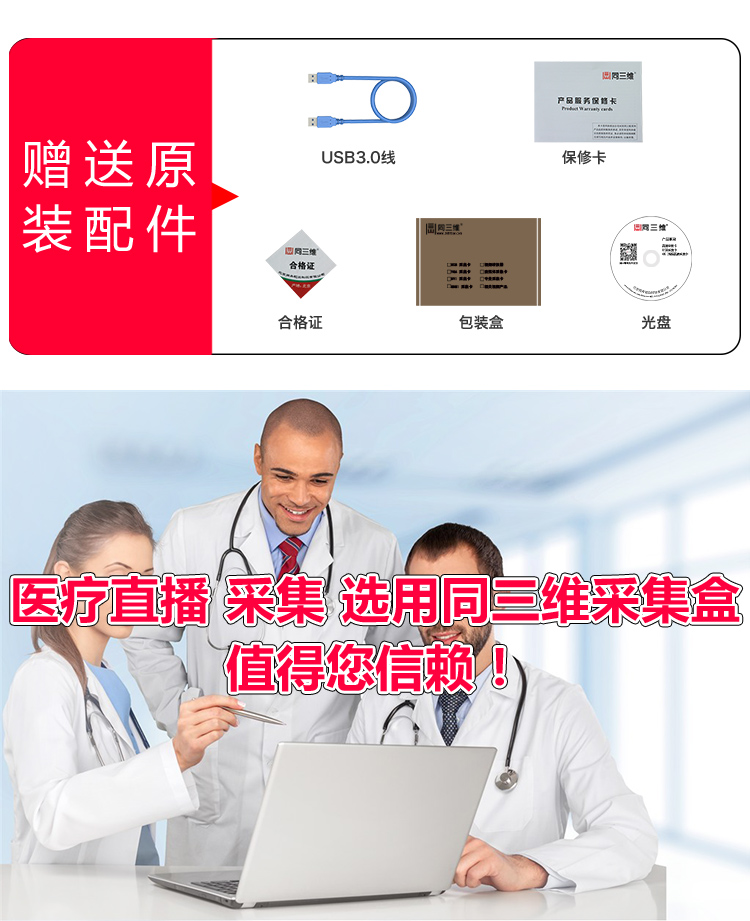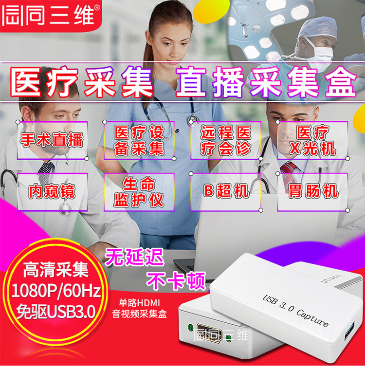 USB3.0免驱高清HDMI采集盒卡医疗直播录制手术网络直播内窥镜彩超