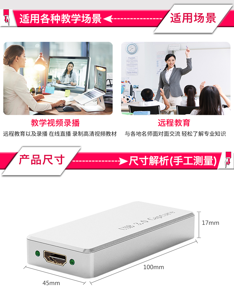 USB3.0单路免驱高清HDMI视频采集盒卡教育录直播远程教学在线培训
