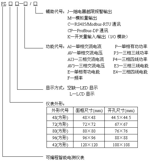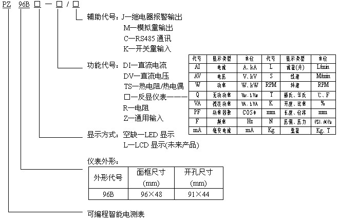 3、PZ96(L)-AI、AI3、AV、AV3、F最多可带3路模拟量输出,PZ96(L)-P3(4)、E3(4)最多可带2路模拟量输出。
