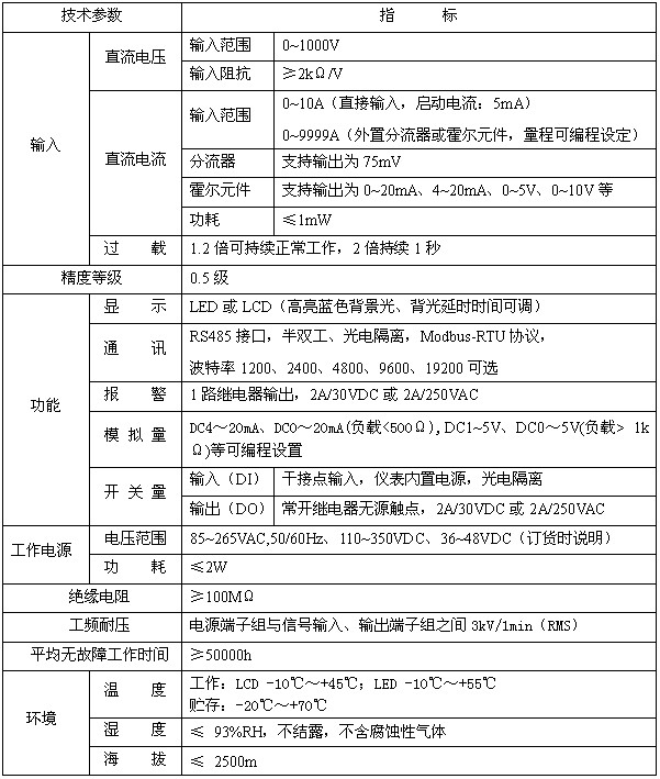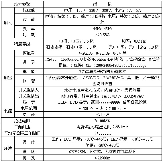 该系列仪表采用交流采样技术,能分别测量电网中的电流、电压、功率、功率因数和电能等参数,可通过面板薄膜开关设置倍率。带RS-485通讯接口,采用Modbus或Profibus协议;也可将电量信号转换成标准的直流模拟信号输出;或带开关量输入/输出,继电器报警输出等功能。