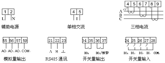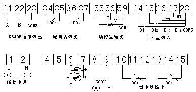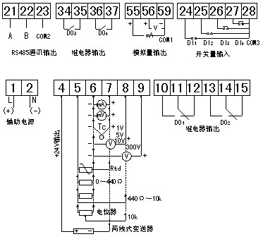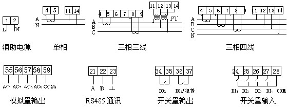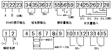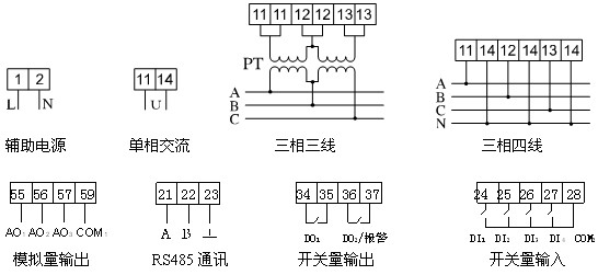 仪表可具有RS-485 通讯接口,采用Modbus-RTU 协议;可带模拟量输出、继电器报警输出、开关量输入/输出。根据不同要求,通过仪表面板按键,对变比、报警、通讯、开关量输出进行设置与控制。