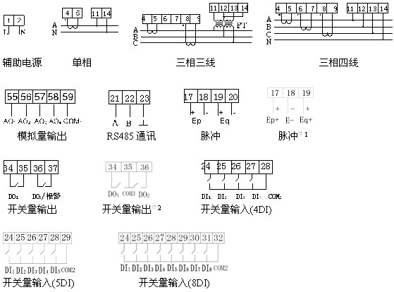 注1:适用于单相电能表及开关量为8DI/2DO的场合;