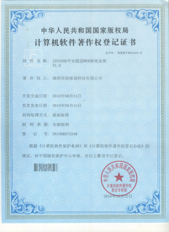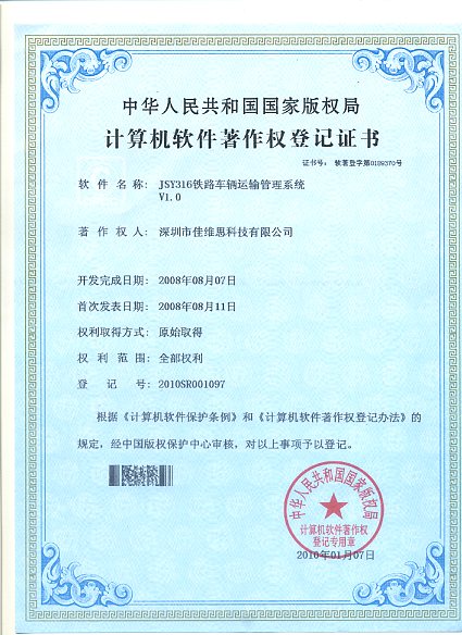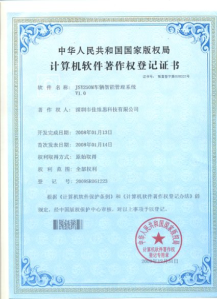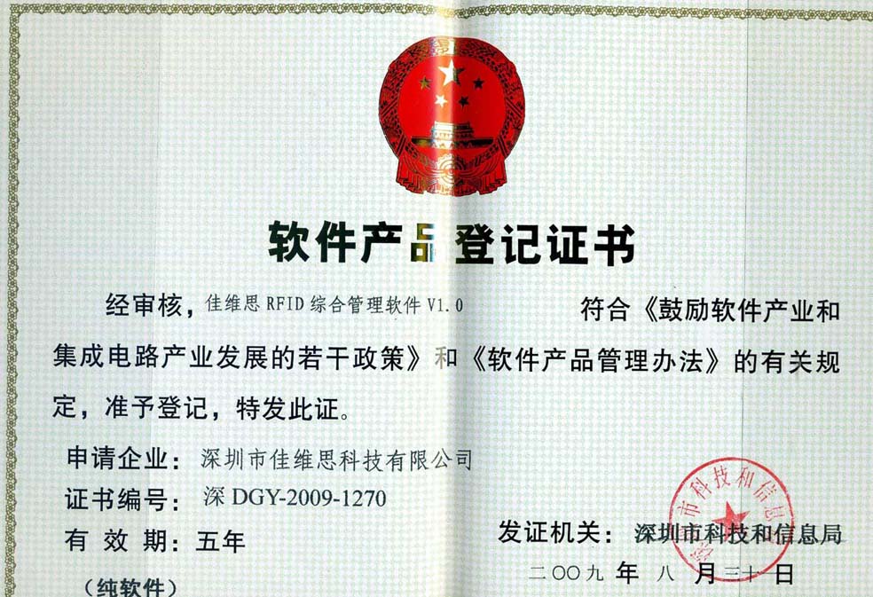 软件产品登记证书