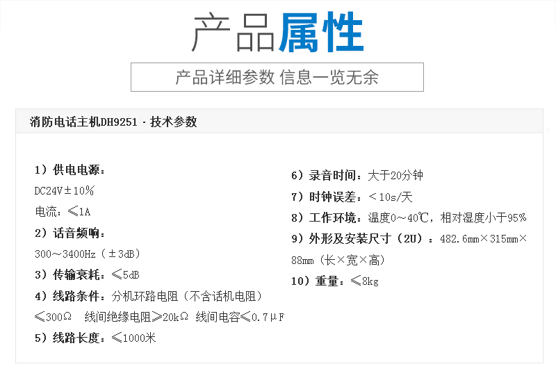 供应消防火灾电话系统电话主机DH9251/B