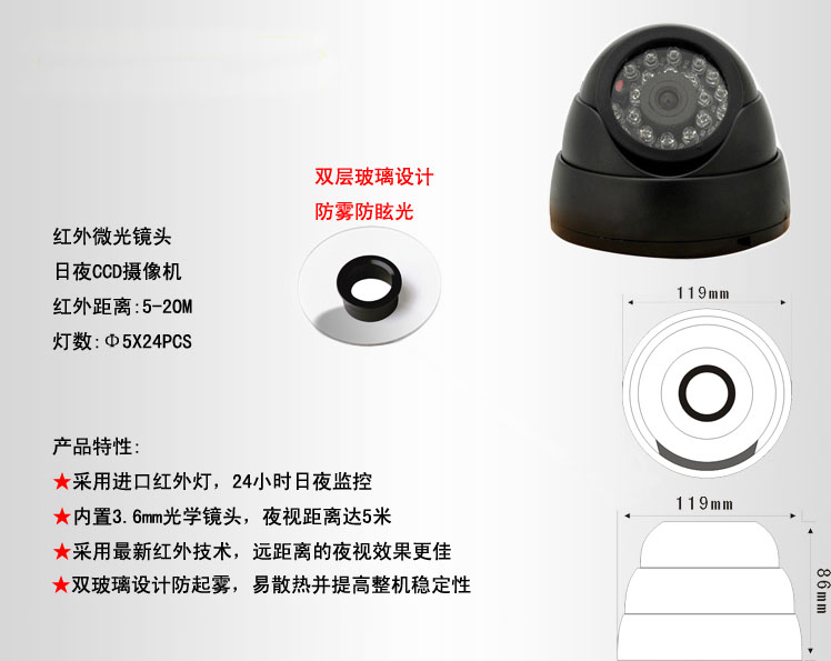 | 内置镜头 | 3.6mm/F1.2(可选6mm.8mm) | |||