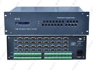 该设备是专门为计算机显示信号以及高分辨率RGB图象信号的显示切换而设计的高性能智能矩阵开关设备,用于将各类VGA信号从输入通道选送到任一输出通道上,该系列产品广泛用于大屏幕投影显示工程、多功能厅、指挥控制中心、多媒体会议室等场合