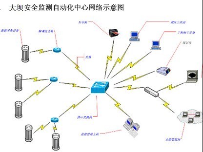 安全监测数据采集系统可通过光缆将位于本工程各个监测站内的监测数据采集上来,然后通过光缆传送到位于管理所的监测中心内的监控主机内。