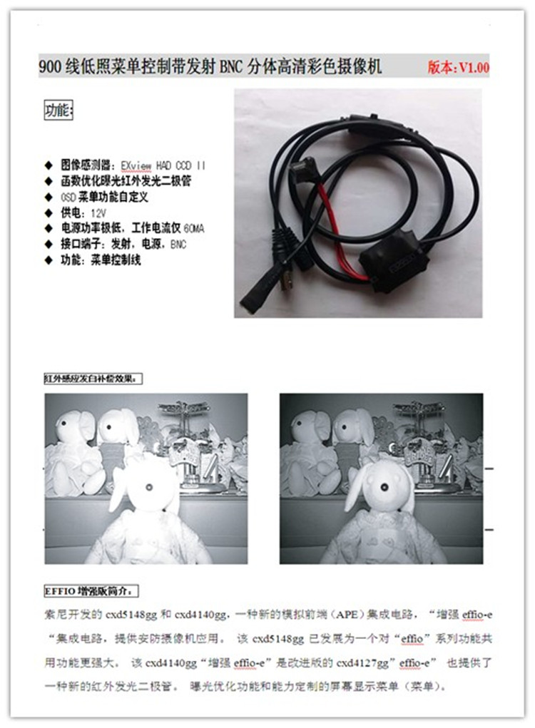 900线低照菜单控制带发射BNC分体高清彩色摄像机