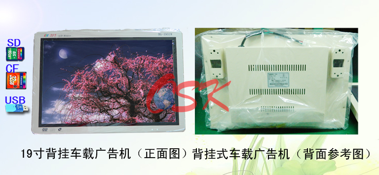 产品名称:19寸背挂式高清车载广告机