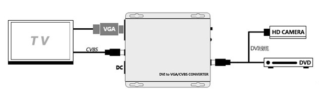 一、DVI转VGA&CVBS(AV)转换器具有如下特性: