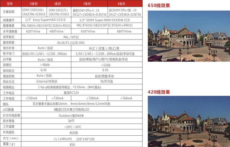 ♦防水、防尘、防雷击,电压异常保护,最新低照度CCD,国际品牌元器件。