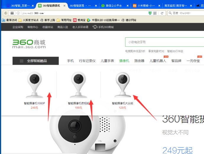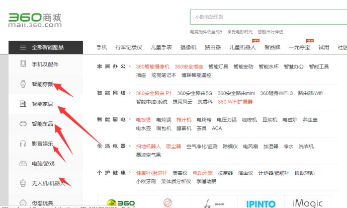 360版块来看一看,比三个月前比较,360又上了几款智能家居硬件产品,网站大气,看出想大力推广商城智能硬件产品,意气风发,大干一场。提升高为战略发布,未来几大电商在产品推进,布局,是一场恶仗。