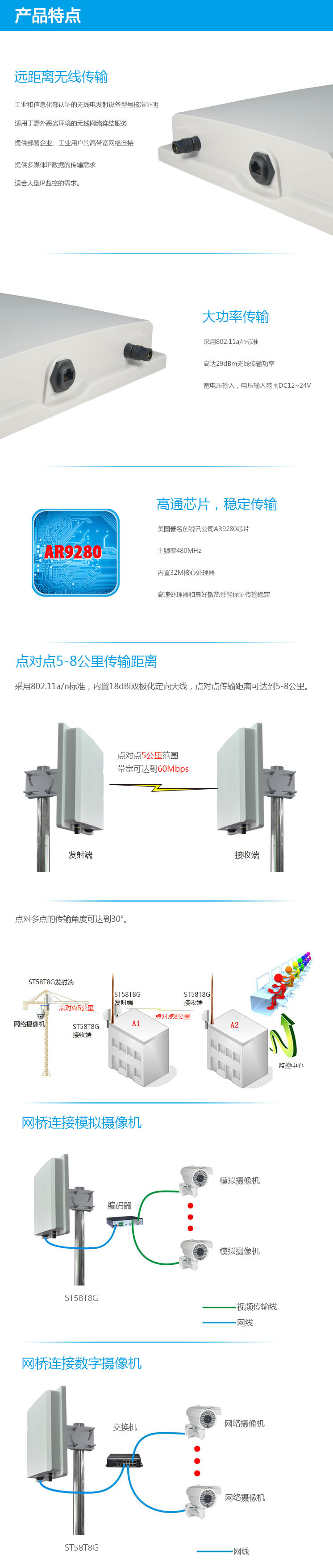 5.8G数字无线网桥 无线视频监控系统