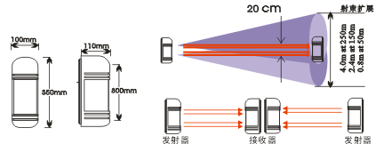 ◎ 智能功率发射:自主开发的芯片能够自动的感知周围环境的变化,根据环境状况来自调整对射的发射功率,大大延长了发射管的使用寿命,也降低电能