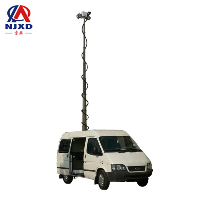 这款产品是为客户定制的、安装在车辆或地面上的照明与监控系统集成。 产品由以下部分组成:1. 桅杆组件:包括桅杆、抱箍、底座、顶端平台等。2. 云台:两方位视频旋转云台,水平旋转360°,垂直旋转150°。3. 照明灯具:2盏 150W金卤灯,220V供电4. 集成控制箱:包括气泵、升降控制、照明控制、云台控制5. 外置大螺旋电缆含照明、监控、控制功能。如果您有这样的需求,我们可以为您进行专门设计和制造。