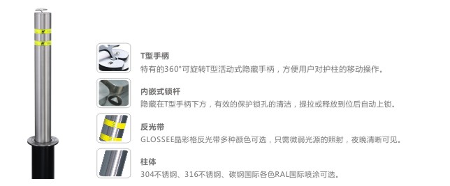 提拉式护柱为私人车库和住宅提供了更经济便捷的通道管制方案产品,协助避免车辆和其他财产的抢盗损失,既不会对环境产生任何影响,也不需要占用任何存放空间,提拉式护柱是升降护柱方案中最为经济的选择,其地埋式的结构解决了通道开放情况下柱体的回收和存放问题。