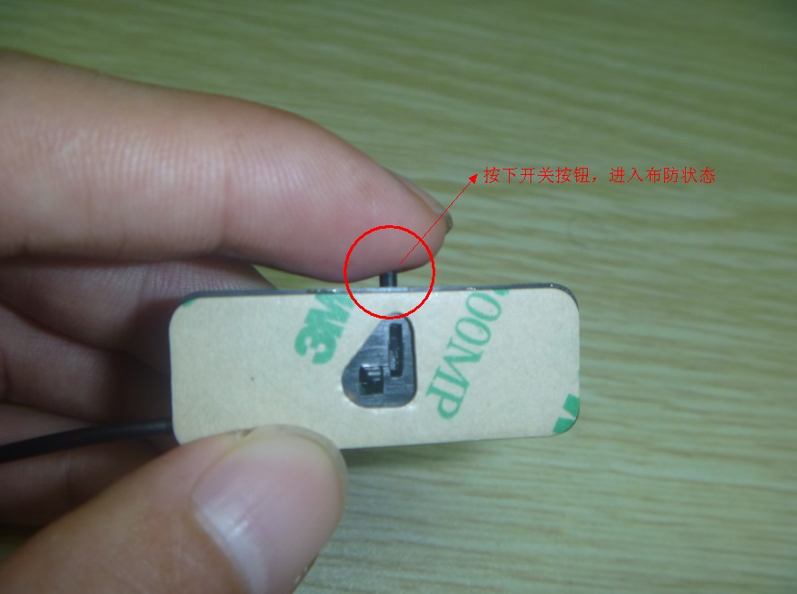 用圆珠笔尖或其他针尖物品,向外拨开开关按钮的滑块,即可解除警报。