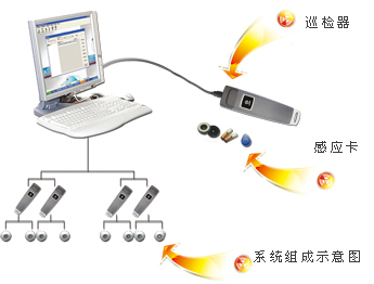 工作流程: 巡检人员手持巡检器,沿着规定的路线巡查。同时在规定的时间内到达巡检地点,用巡检器读取巡检点,工作时伴有声音和灯光双重提示。巡检器会自动记录到达该地点的时间和巡检人员,然后通过数据通讯线将巡检器连接计算机,把数据上传到管理软件的数据库中.管理软件对巡检数据进行自动分析并智能处理,由此实现对巡检工作的科学管理。