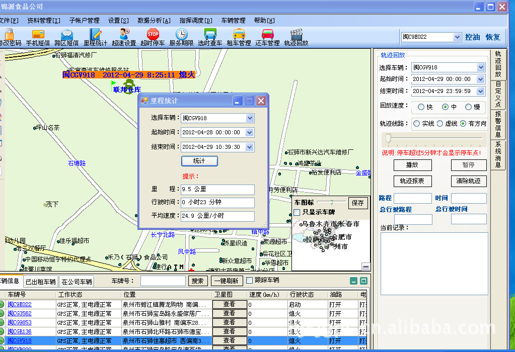 轨迹回放; 超速报警; 里程统计;