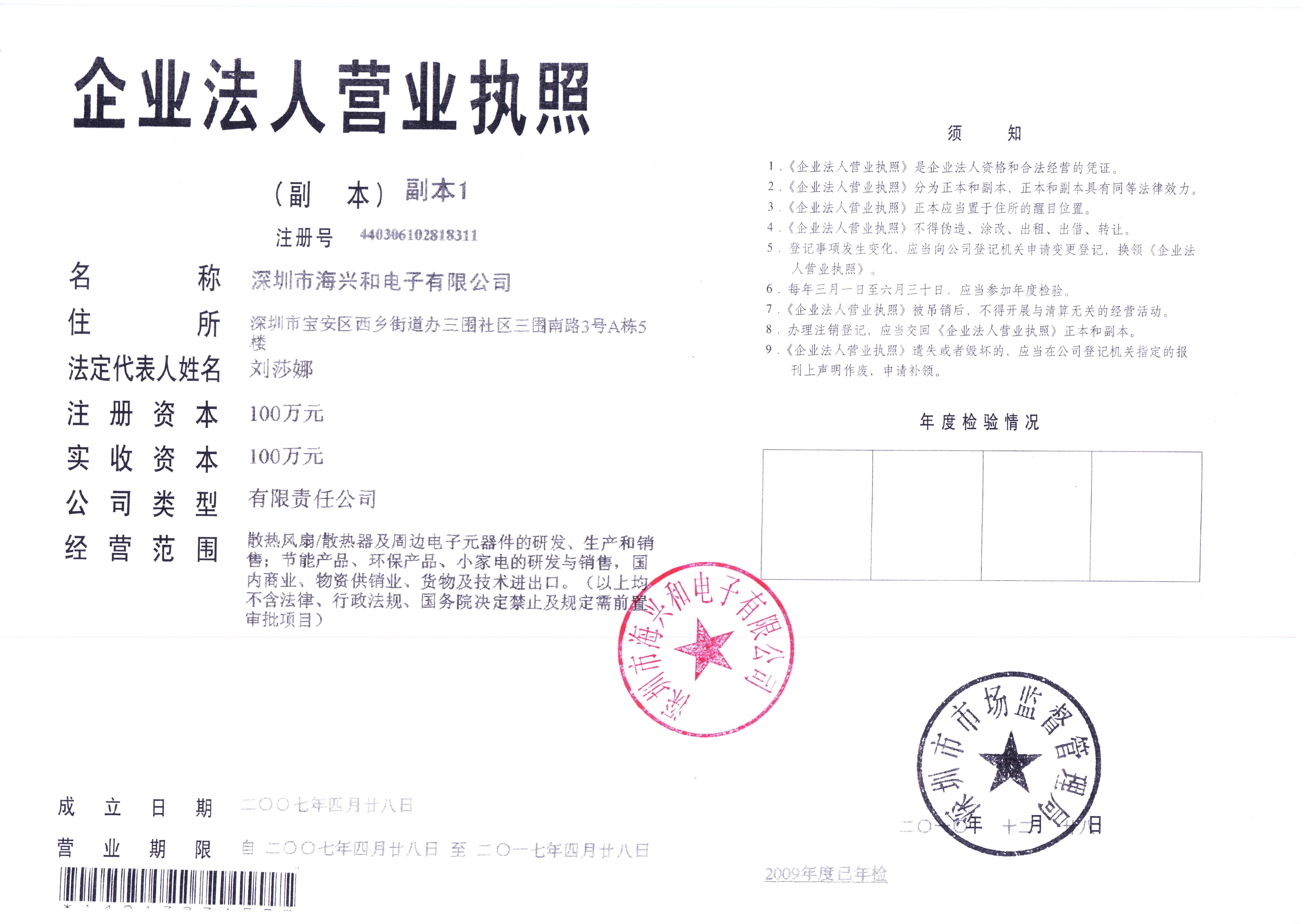- 企业类型: 有限责任公司 法定代表人: 刘莎娜 公司注册地: 中国 广东 深圳 注册资本: 人民币 100 万公司成立时间:2007-04-28 主营产品或服务:散热风扇;散热器;散热片;HXH;台达风扇;ADDA风扇;直流风扇;交流风扇;无刷马达;小风扇; 主营行业: 工业风扇 其他未分类 散热系统 接入设备 经营模式: 生产加工 是否提供加工/定制服务: 否 员工人数: 101 - 200 人 厂房面积: 2300 平方米 主要客户: 通