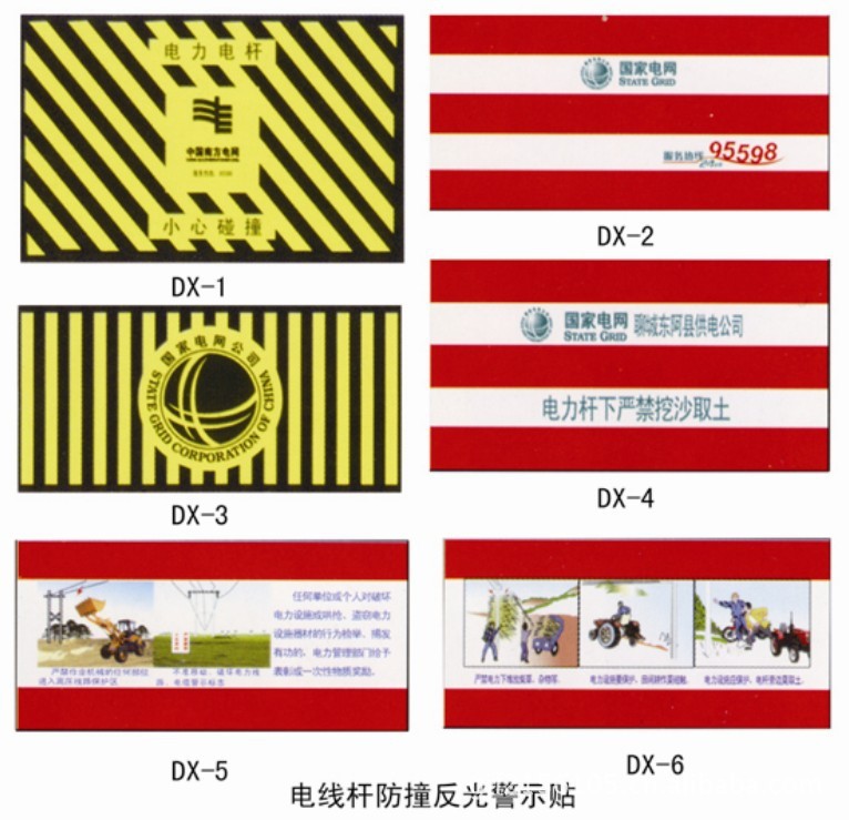 电杆防撞反光警示带 反光膜 电信警示贴,防撞反光警示贴 名 称 三红两白警示贴 原产地 山东 产品尺寸 500mm×1200mm,也可根据客户要求订做 产品优点 采用工程级反光膜印制而成,专业用于电业电线杆防撞警示作用!可分为三种材质:1、反光膜外加PVC片,2、反光膜外加镀锌铁板,3、反光膜加背胶纸。(用户可根据所需定制) 主要市场 全国各地 付款方式 现款现货 交货日期 收到货款10日内 包装 纸箱 名 称 红白国网绿警示贴 原产地 山东 产品尺寸 500mm×1200mm,也可根据客户要求订做 产品优点 采用工程级反光膜印制而成,专业用于电业电线杆防撞警示作用!可分为三种材质:1、反光膜外加PVC片,2、反光膜外加镀锌铁板,3、反光膜加背胶纸。(用户可根据所需定制) 主要市场 全国各地 付款方式 现款现货 交货日期 收到货款10日内 包装 纸箱 名 称 黄黒反光膜警示贴 原产地 山东 产品尺寸 500mm×1200mm,也可根据客户要求订做