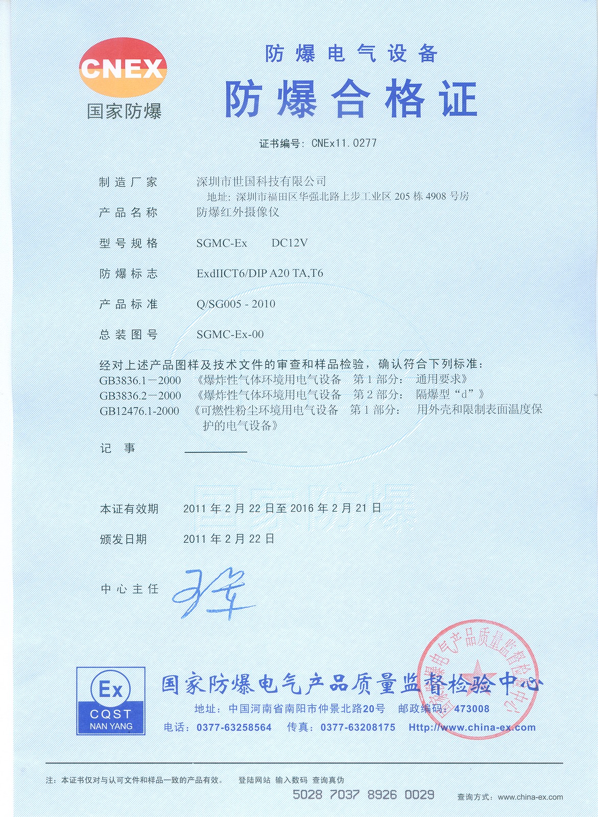 防爆电气设备防爆合格证