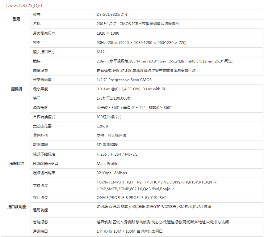 型号:DS-2CD3325(D)-I