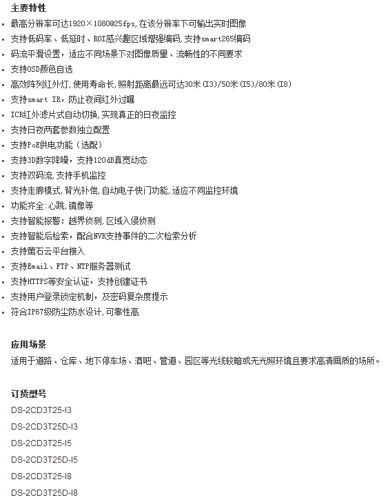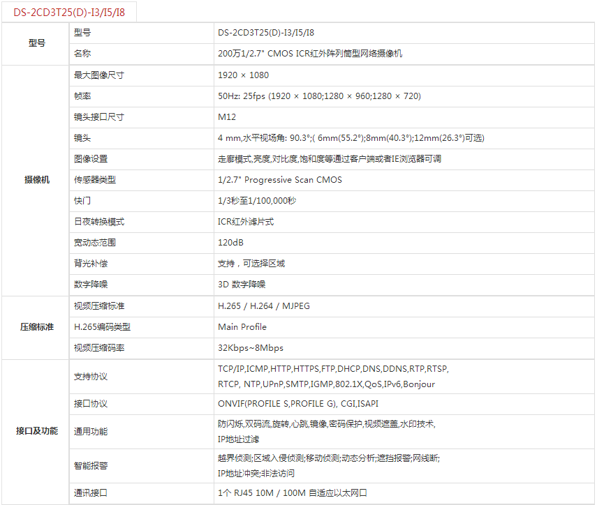 型号:DS-2CD3T25(D)-I3/I5/I8
