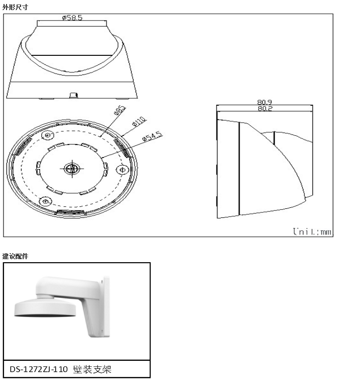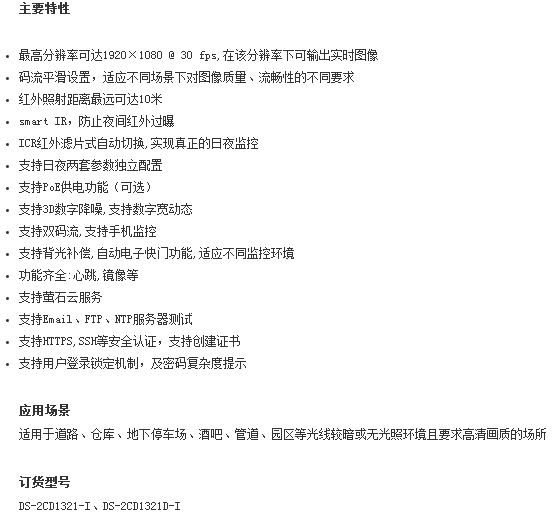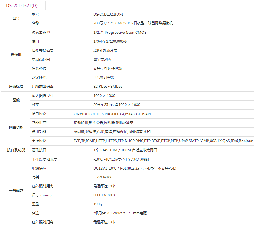 海康威视200万像素红外半球网络摄像机DS-2CD1321(D)-I