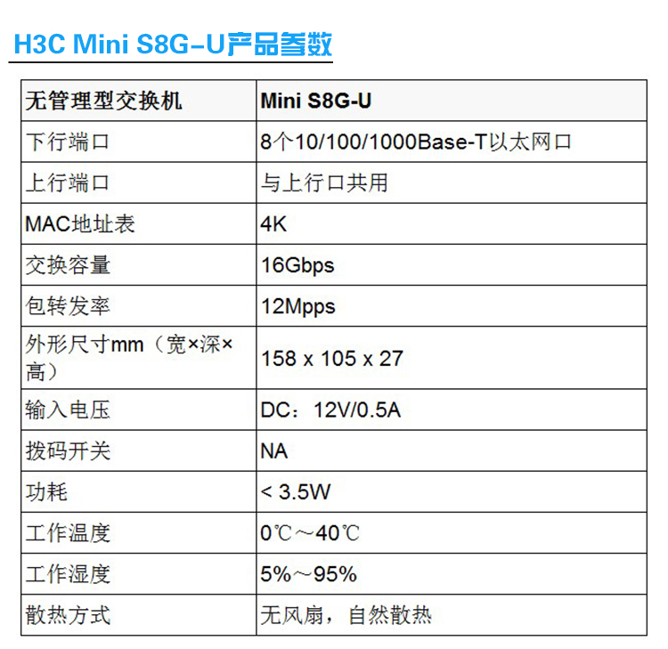 华三视频监控专用8口千兆交换机MINI S8G-U