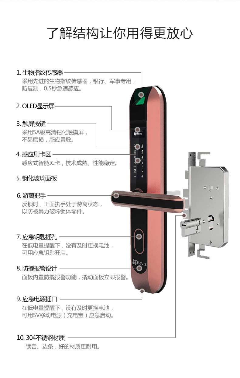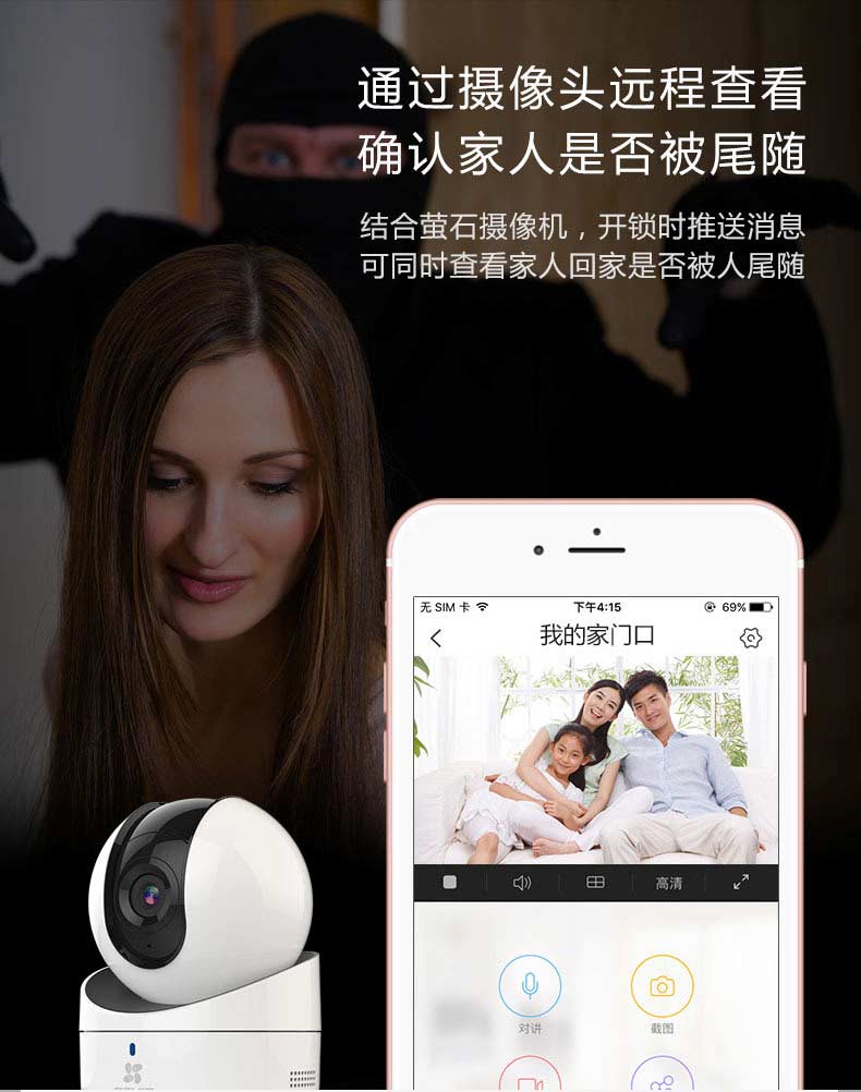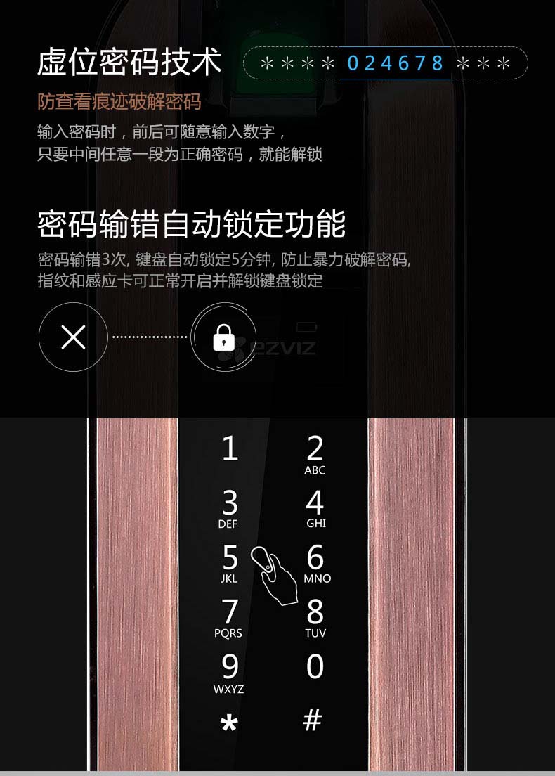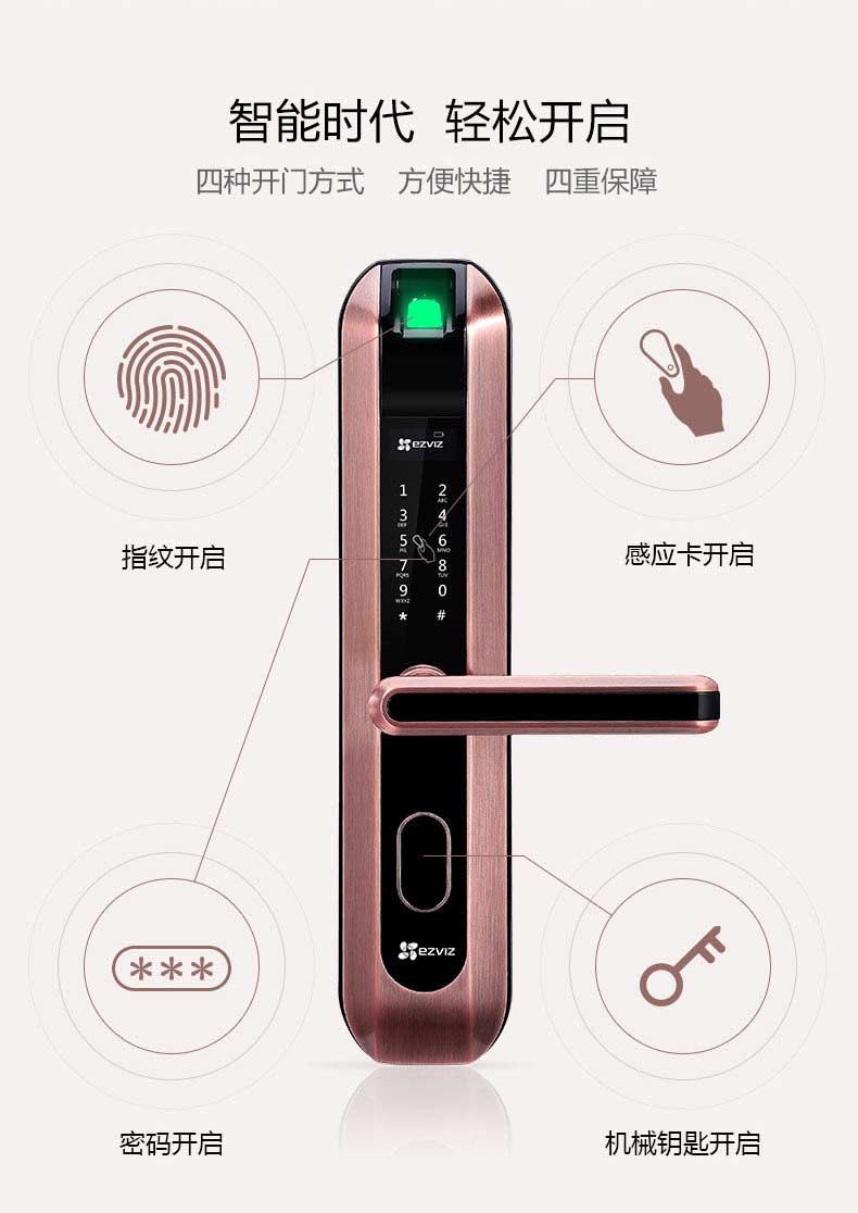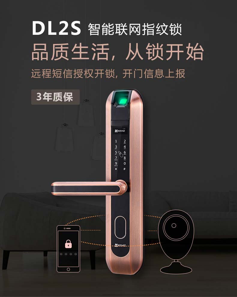 萤石DL2S联网版指纹锁家用防盗门锁 App远程开门