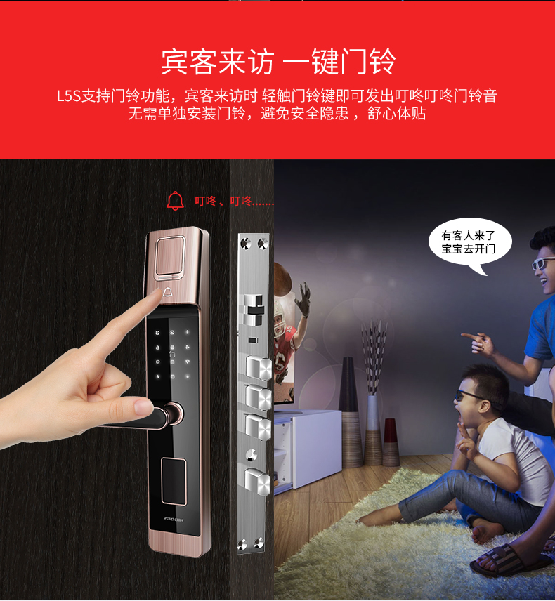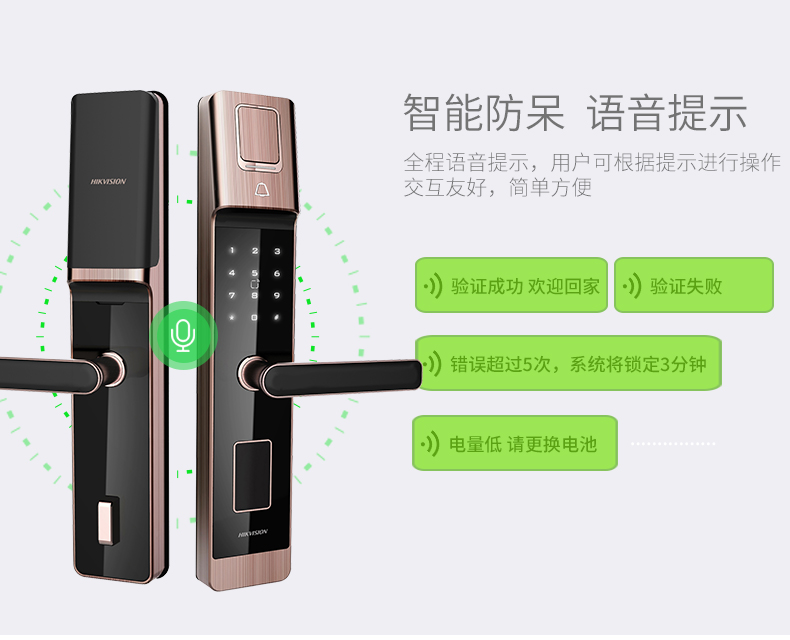 海康威视L5S智能指纹密码锁 家用防盗门电子门锁