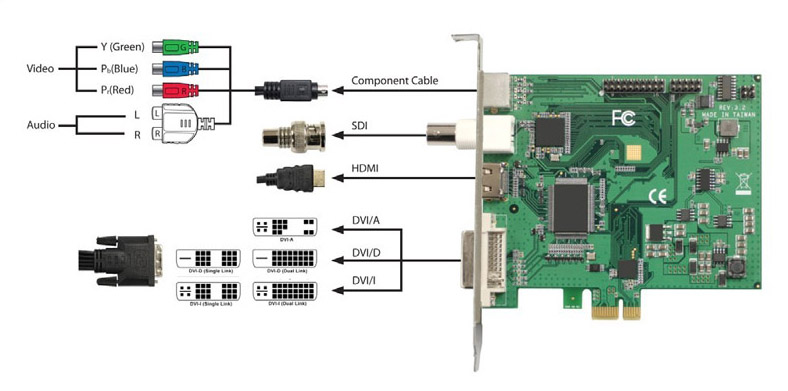 高画质HD影像采集卡具备完整的影音輸入端子,支持1080p / 720p / 480p / 480i影像来源信号,HD 1080i高画质无失真 影像全屏幕即时预蓝览及采集,可连接数字机顶盒、MOD、卫星电视接收器、BD藍光播放器、HDV数字摄像机、Xbox 及PS3游戏机等设备,同时提供DVI-I (DVI-D或VGA)显示卡端子输入,可直接连接另一部PC / Mac电脑显示卡输出直接 进行录影,适合学校教师录制电脑多媒体教学影片、商务会议简报录影或其他需要录制电脑屏幕画面的应用环境,真正满足使用者多样化的影像设备及录制需求。