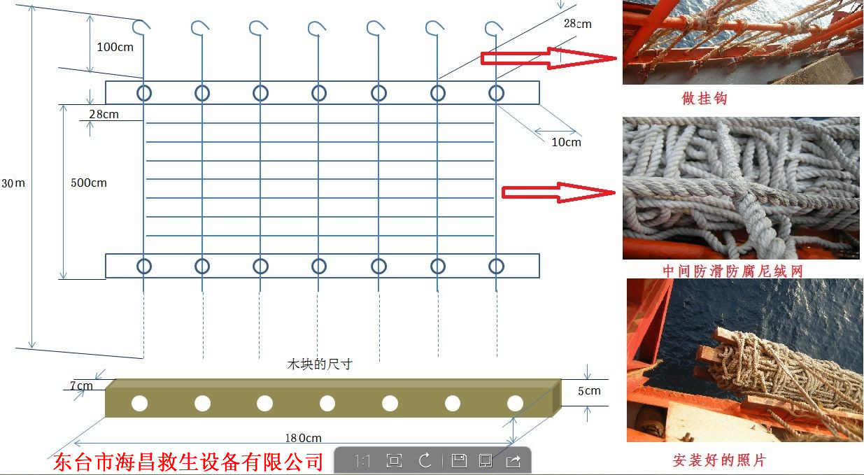 石油平台等等专用的平台攀爬网、石油平台绳梯子、安全网、平台用攀爬网是由海昌救生公司专业制作,常规的平台攀爬网、石油平台绳梯子、安全网、平台用攀爬网是宽度2米左右,网格30*30,长度根据您的要求定做,采用不锈钢配件,海昌救生公司是专业的水上安全、个人安全防护专家,任何关于平台攀爬网、石油平台绳梯子、安全网、平台用攀爬网的问题,您都可以咨询东台海昌救生设备有限公司0515-85765155.