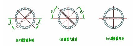 3.3.1、被测流体应充满管道且流动稳定。 3.3.2、被测的流体应当是单相的,其相态不变,对于 成分复杂的流体须与单一成分的流体类似时方能使用。 3.3.3、被测流体在实际工况下的ReD应大于3×104 3.3.4、应保证传感器前后直管段长度的要求。 3.3.5、管道内径大于100㎜为好。 3.3.6、在传感器前2D的管道内表面上,应清洁光滑。 五、安装与维护 4.1、安装要求 4.1.1、对于I型的传感器,已将检测杆与一段管道焊成一体,安装时必须使传感器在流体流动方向内。要求工艺管道的内径与传感器的内径一致,或至少在上游直管段所要求的长度范围内传感器的轴线与管道轴线夹角尽可能为零。 其他类型的传感器是将其检测杆插入工艺管道中,安装时除了总压孔应正对流速方向外,必须保证传感器检测杆与工艺管道的轴线垂直,其允许的位置角压偏差如图五所示。 传感器总压孔中心与管道轴线夹角应小于7° 传感器检测杆沿管道直径方向插入到底部,其角度偏差小于7° 对于垂直管道传感器可安装在管道水平面沿管道圆周360的任何位置上,高低压引压管应处于同一平面上,由图六(a)所示;当测量液体时,应向下侧倾斜安装如图六(b)所示;当测量气体的蒸气时应向上倾斜安装如图六(c)所 示。 4.1.2直管段 由于传感器是以速度面积法为基础,采用近似积分理论,用较多的点来描述。 分布方程,并且是在充分发展的速度分布条件下建立的。所以,为了能得到一个理想的分布,必须在传感器前后有一定长度的直管段(见下表)