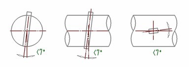 安装与维护4.1、安装要求 4.1.1、对于I型的传感器,已将检测杆与一段管道焊成一体,安装时必须使传感器在流体流动方向内。要求工艺管道的内径与传感器的内径一致,或至少在上游直管段所要求的长度范围内传感器的轴线与管道轴线夹角尽可能为零。其他类型的传感器是将其检测杆插入工艺管道中,安装时除了总压孔应正对流速方向外,必须保证传感器检测杆与工艺管道的轴线垂直,其允许的位置角压偏差如图五所示。传感器总压孔中心与管道轴线夹角应小于7° 传感器检测杆沿管道直径方向插入到底部,其角度偏差小于7° 对于垂直管道传感器可安装在管道水平面沿管道圆周360的任何位置上,高低压引压管应处于同一平面上,由图六(a)所示;当测量液体时,应向下侧倾斜安装如图六(b)所示;当测量气体的蒸气时应向上倾斜安装如图六(c)所示。 4.1.2直管段由于传感器是以速度面积法为基础,采用近似积分理论,用较多的点来描述。分布方程,并且是在充分发展的速度分布条件下建立的。所以,为了能得到一个理想的分布,必须在传感器前后有一定长度的直管段(见下表)