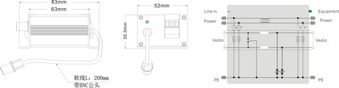 SV-3/220 mini 3合1 CCTV电涌保护器: 保护220VAC交流供电、视频/音频信号/云台控制线路