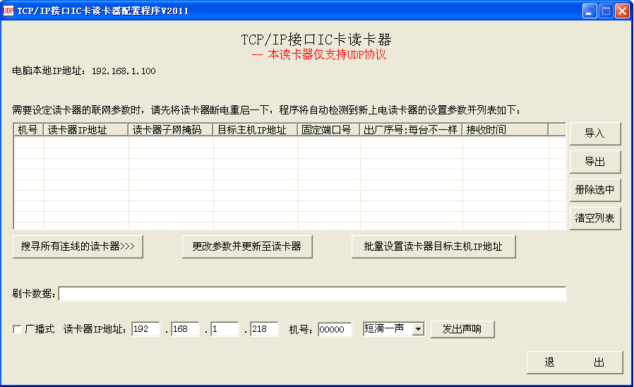 3). 支持批量修改读卡器的目标电脑IP地址,可用于快速将网内所有读卡器指向任何一台电脑。