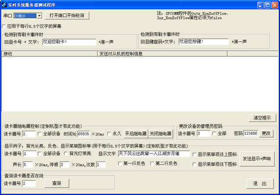 根据以下测试软件图可略看出使用功能(点击下载开发包)