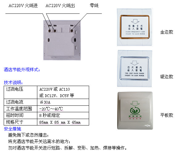 3.专卡专用,4442卡或T5557或MF1卡取电,识别加密或限制房号或限制时间段取电