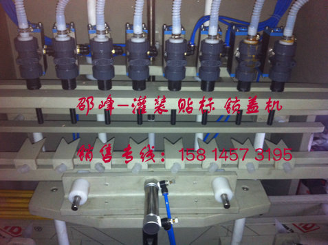 工作流程:人工送瓶--自动挡瓶---灌装嘴下潜---自动灌装---理盖上盖---锁盖机---成品---(选配 自动贴标机)---