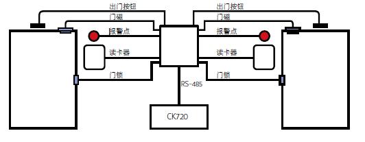 以下为CK720控制器及RDR2S接口模块的双门配置图