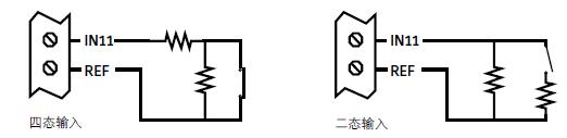 四态输入提供2个附加状态(断路和短路),需要设置2个电阻在输入设备。见图2及3。