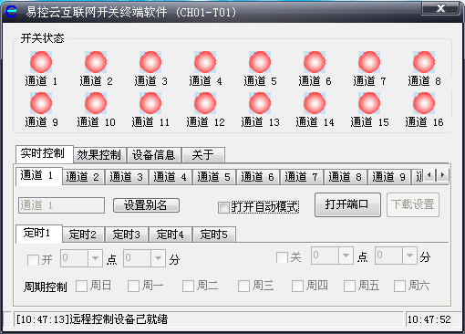 您需要下载并安装易控云互联网开关控制器终端软件。软件运行截图如下: