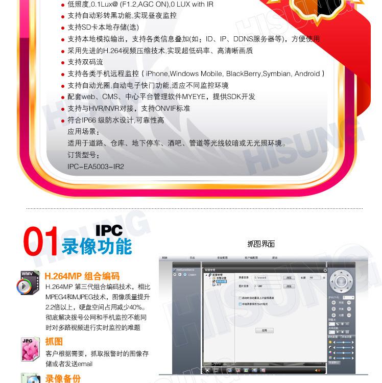 产品优势:编码标准:采用目前最高级别的H.264编码格式