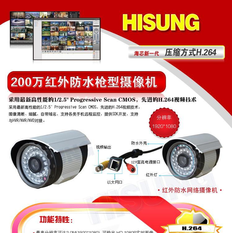 200万高清 网络摄像机 红外防水枪型 H.264监控摄像头