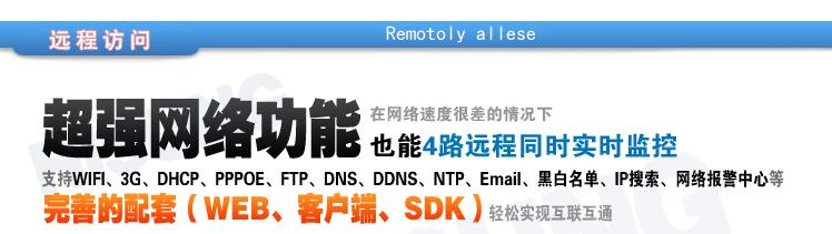 网络功能: 内置WEB SERVER,拥有Email报警邮件,FTP,DDNS动态域名,PPPOE拨号,DHCP自动获取IP地址,NTP自动校时,UPNP端口自动映射,IP黑白名单等功能