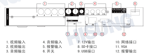 视频输出: 2路BNC,1路高清VGA输出,支持3路同时输出
